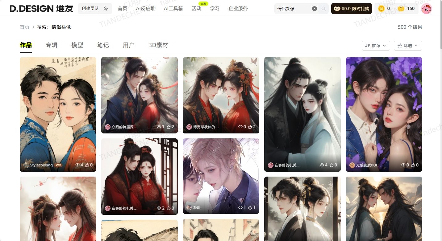 亮点:老牌在线设计平台新增「AI情侣头像」工具,输出矢量SVG,可一键换色;内置T恤、手机壳实时预览,直接下单制作情侣周边,把头像穿在身上也不怕像素糊。
