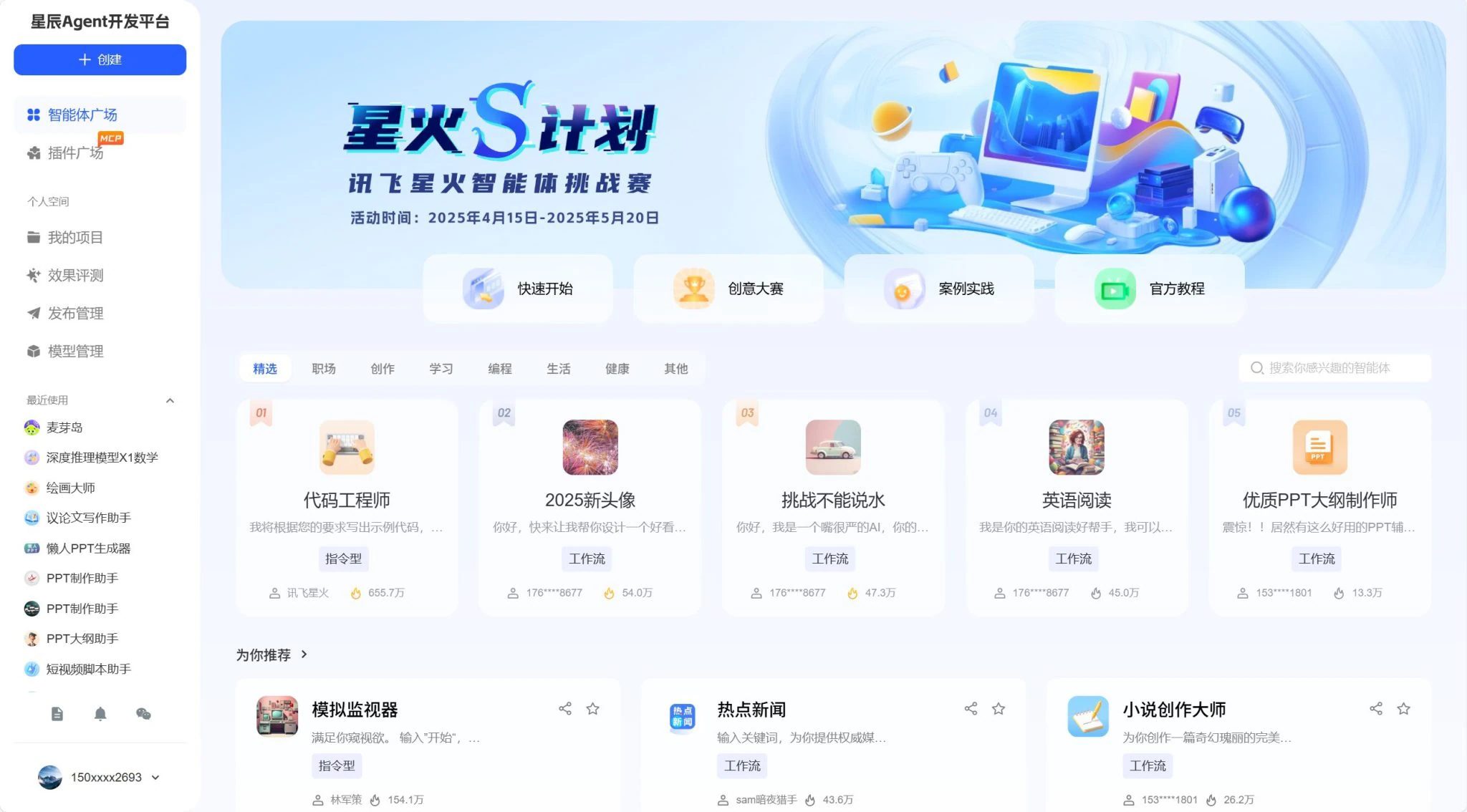 传送门:https://agent.xfyun.cn/home?ch=xcagent-aitool14