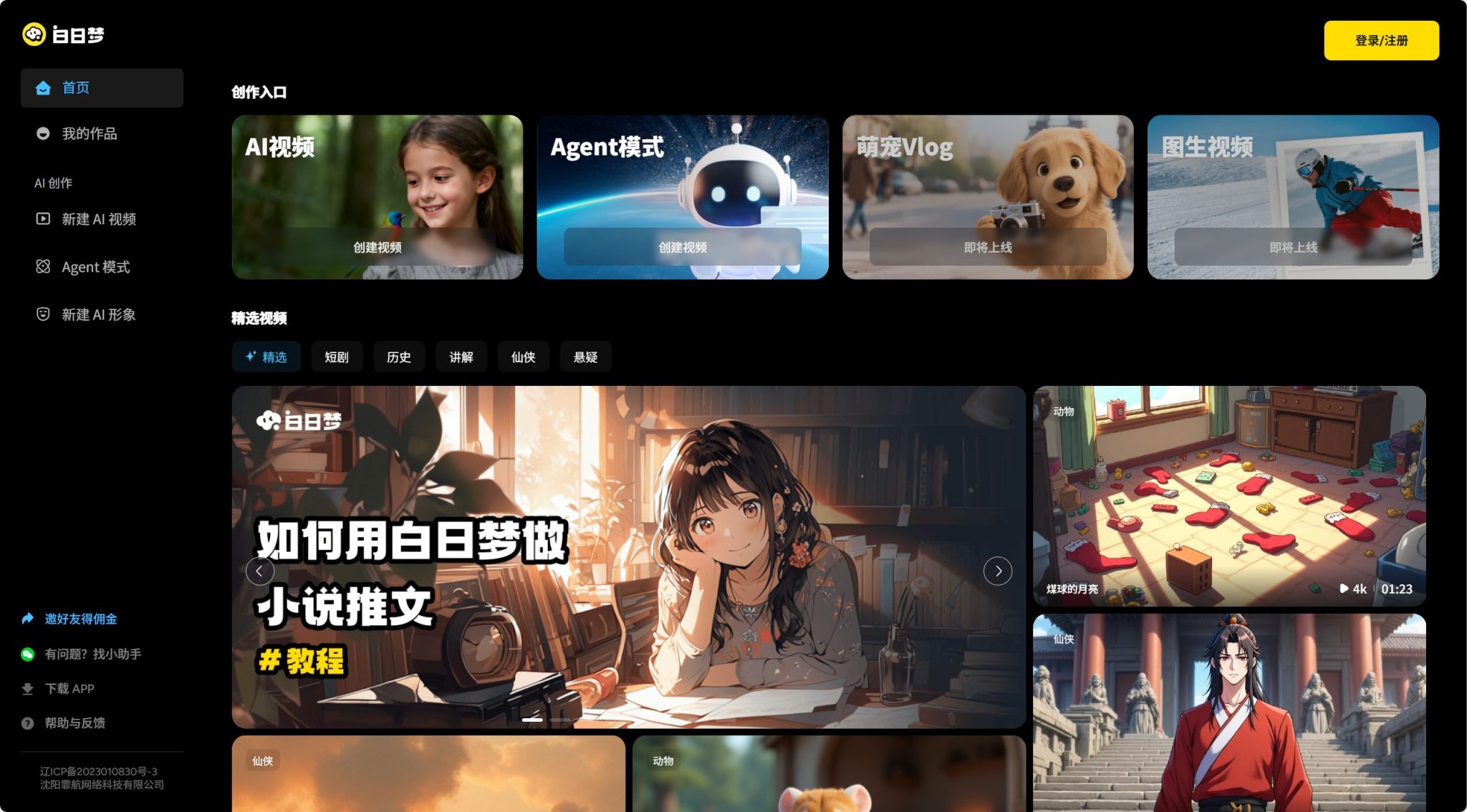 全新的文生视频类 AIGC 创作平台。支持文生视频、动态画面、AI 角色生成、人物/场景一致性。最厉害的是能生成连贯剧情,我用它做了个 30 秒动画,朋友还以为是专业团队做的!每天免费生成 1 分钟视频。