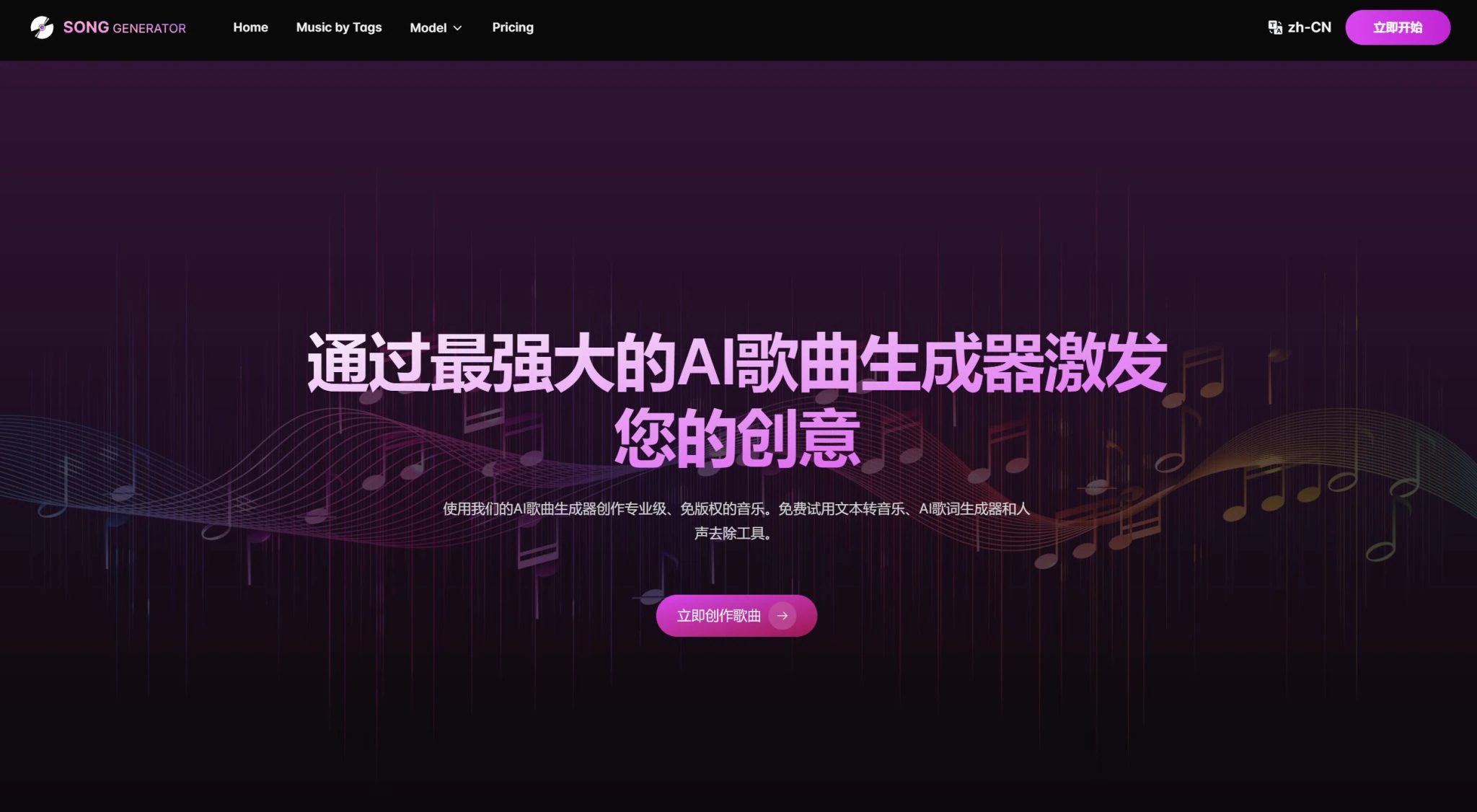 零门槛 AI 歌曲生成器,激发您的创意。支持 20+ 音乐风格,还能生成伴奏。我用它给女儿生日视频配了首歌,全家人都惊呆了!每天免费生成 2 首歌。
